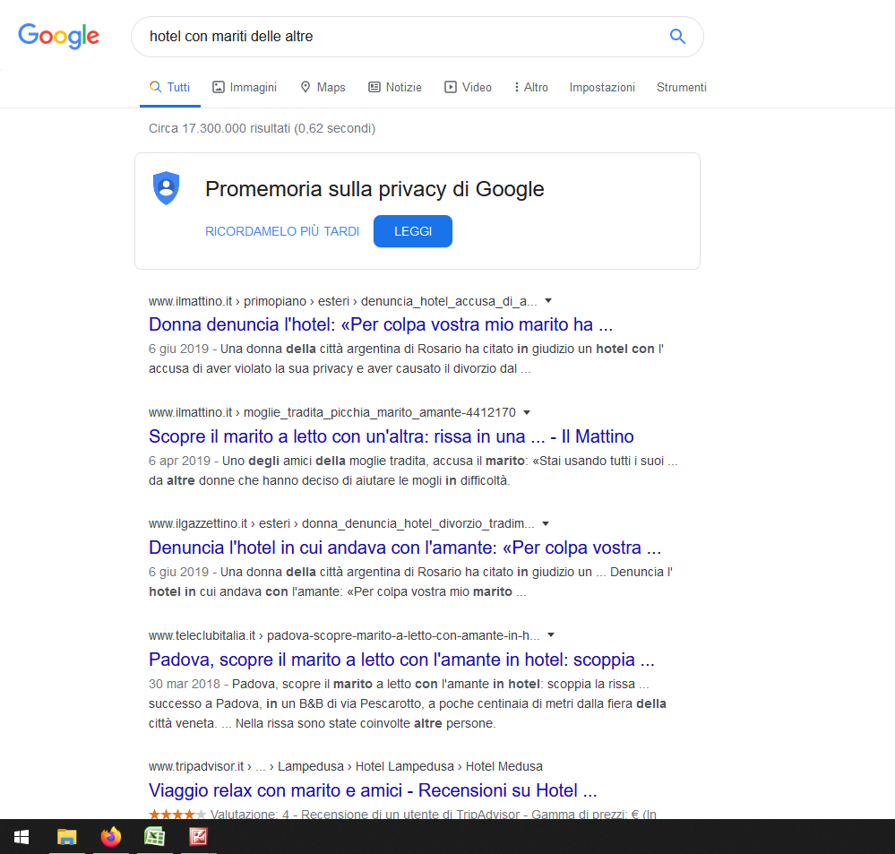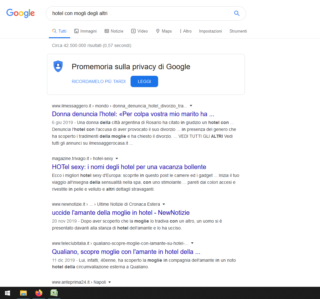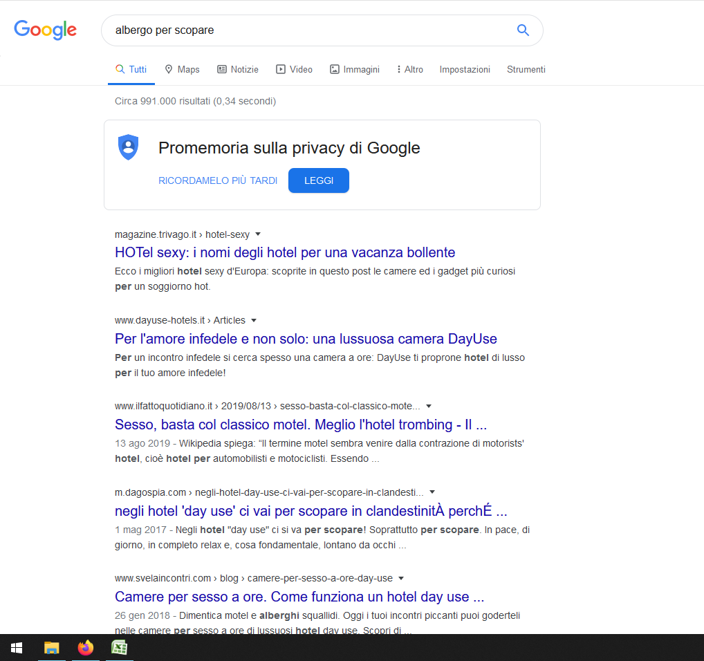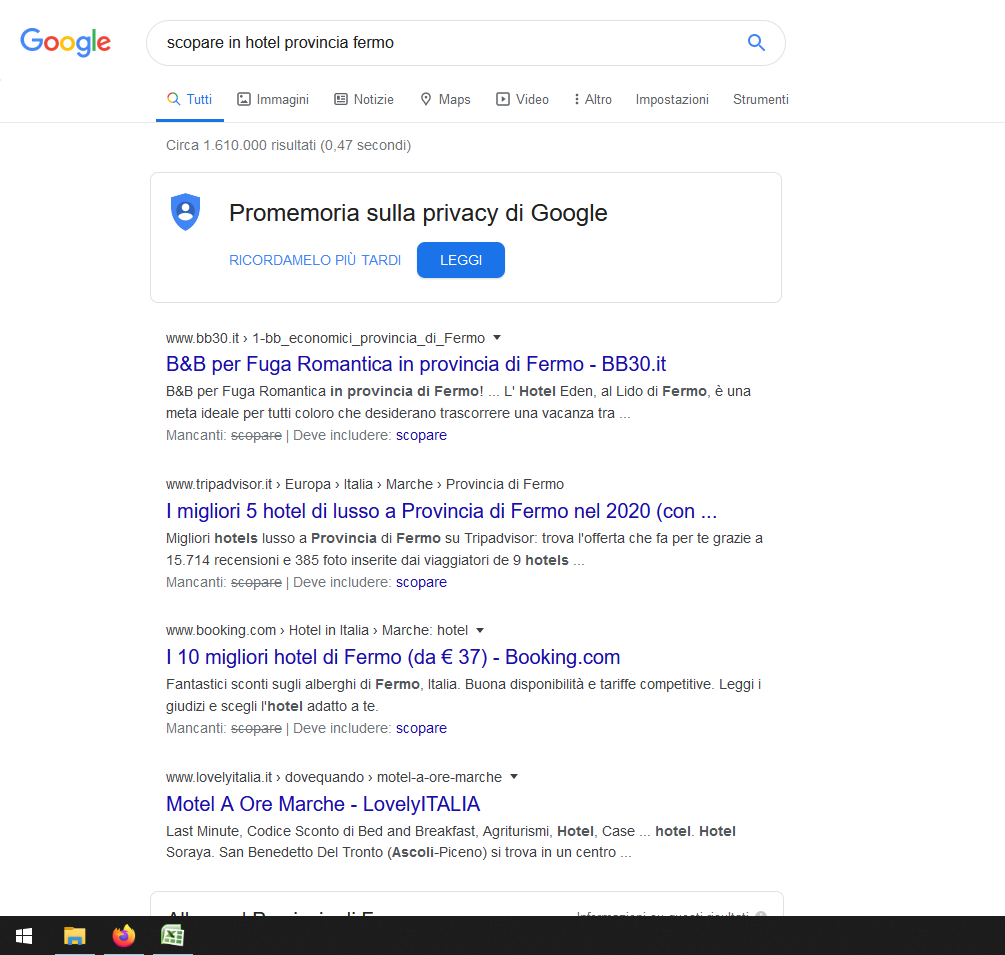 Scherzando, ho provato ad inserire ‘scopare in hotel provincia Fermo’. Guardate un po’ che numeri…